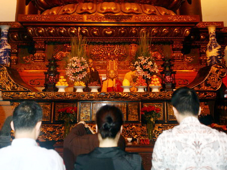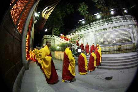 10月26日下午,法会举行了盛大庄严的水陆法会圆满送圣仪式,承载着僧俗大众报恩超荐、成佛利生宏誓大愿的极乐西方船在灵隐寺外的“咫尺西天”举火焚化,在主法诸师的带领下,大众法师及护法居士齐声诵念回向。至此,延续七日七夜的灵隐寺“二零一零年法界圣凡水陆普度大斋胜会”功德圆满。