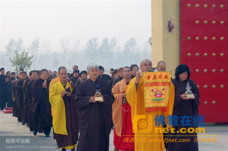 2010年11月1日上午,江苏宿迁市泗阳县正和寺举行迎请佛舍利和舍利宝箧塔装藏法会。来自全国各地千名佛弟子参加了此次迎请法会。装藏法会由正和寺住持勇军法师主法。