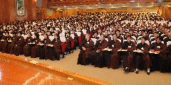 11月7日,“受完戒,就要学戒。”佛光山2010年传授在家五戒菩萨戒戒会于成佛大道进行“正授”项目,接着即礼请戒会开堂和尚慧昭法师、教授阿阇黎尼永本法师分别于檀信楼大礼堂、如来殿大会堂,针对新戒与复戒的戒子们,解说“在家戒的实践”、“持戒与护念”课程,勉励戒子既已受了戒,今后应持戒与实践。