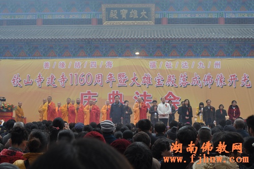 2010年11月17日上午,中国佛教协会副会长、湖南省佛教协会会长、长沙古麓山寺方丈圣辉大和尚出席常德澧县钦山寺建寺1160年暨大雄宝殿落成庆典法会。