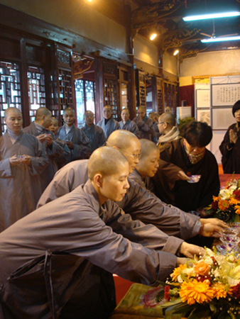 2010年11月24日,浙江温州太平佛学苑的全体师生步行到位于温州市鹿城区人民西路松台山景区的妙果寺,共同瞻仰唐代永嘉大师舍利子。