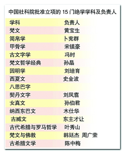 为此,长期从事西夏文研究的史金波研究员和当时尚健在的八思巴字研究泰斗照那斯图先生等相继数次给中国社科院领导写信,呼吁加强绝学学科的保护,扶持绝学学科的发展。中国社科院深感兹事体大,高度重视,在认真研讨和反复论证的基础上,于2008和2009年相继批准了15个绝学学科的立项。