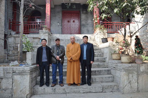 江苏省佛教协会副会长、徐州市佛教协会会长、兴化寺方丈果光大和尚热情接待了来客。在方丈室果光大和尚同陈连庆教授、丁维军副局长探讨云龙山景点的建设、改造初步意见。