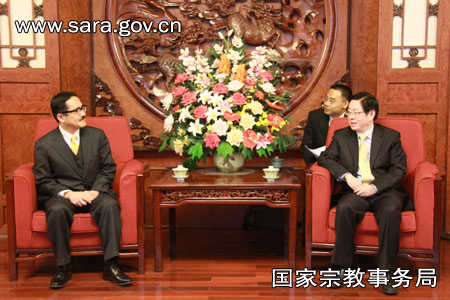 12月3日下午,王作安局长会见了应中国佛协邀请访华的日本佛教大学校长山极伸之一行。 山极校长此次访华主要目的是授予中国佛协传印会长“名誉博士”学位。王作安局长高度评价了佛教大学数十年来为中国培养佛教人才所做的贡献,并对传印会长被授予“名誉博士”学位表示欣慰。双方还就今后继续加强在佛教教育方面的合作交换了意见。