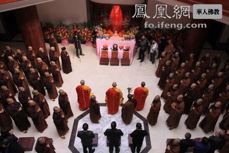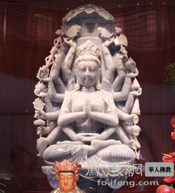 凤凰网华人佛教浙江讯:2010年12月9日上午,由多位著名企业家、护法居士共同发心供养的十八臂翡翠观音像开光法会在浙江普陀山佛教博物馆隆重举行,这也意味着史上最大一尊翡翠观音像正式安家普陀山,成为观音道场普陀山又一处殊胜的朝拜圣地。