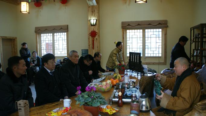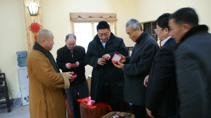 2010年12月26日下午,台湾光彩促进会、台湾光彩事业基金会、台湾农业联合委员会执行长骆俊宏等一行台商,在涟水县交通局局长薛成实陪同下,到江苏省涟水能仁寺参访交流,受到涟水县佛教协会会长、能仁寺方丈曙正法师的热情接待。在曙正法师的引领下,骆俊宏一行先后参观了妙通塔、大雄宝殿、藏经楼、方丈楼、斋堂等主要建筑。随后,曙正法师与一行来到能仁寺禅茶室品茶,并且进行了热情友好的交谈。