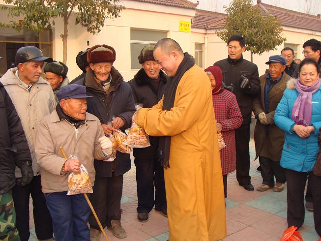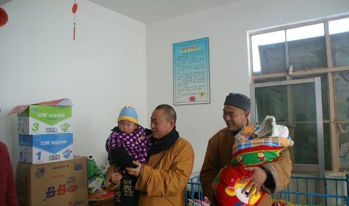 据悉,涟水县佛教协会和能仁寺,为了弘扬中华民族乐善好施、扶困济危的传统美德,元旦期间,还组织僧众居士举行了一些列的慈善公益活动:一、元月3日下午,到灰墩乡慰问一家特困户,送去2000元人民币;二、元月4日上午,慰问涟水孤儿院,送去价值约3000元的奶粉、尿不湿等物品;三、元月4日下午,慰问红窑敬老院孤寡老人,送去蛋糕、饼干、芝麻糊等价值约5000元的食品,会长曙正法师还带去佛珠和亲手书写的“平安富贵”的春联,一一发到老人手中,给老人以节日的的问候和祝福。