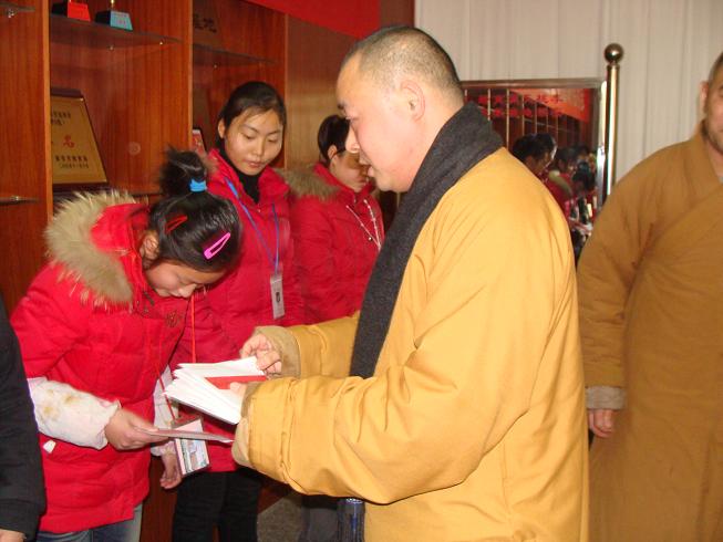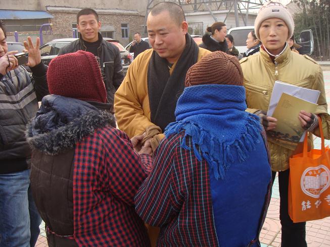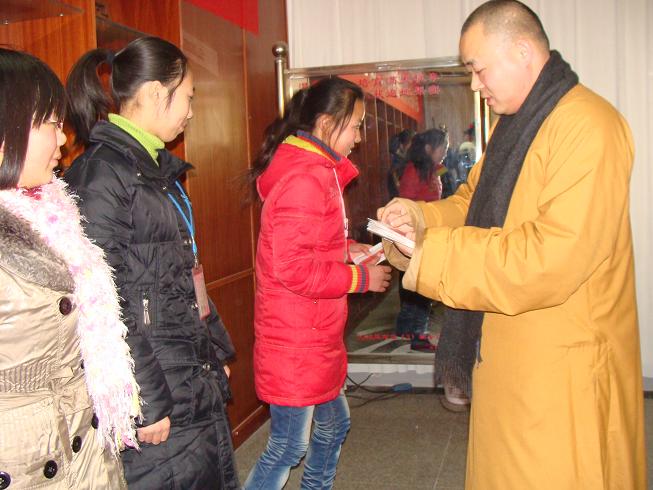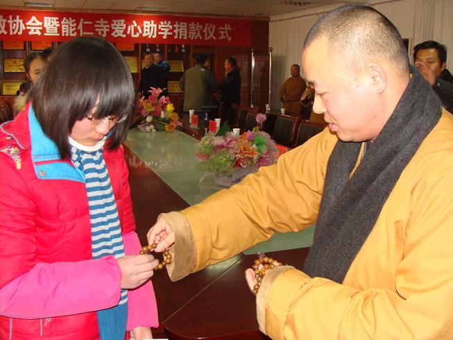 向贫困生赠送佛珠