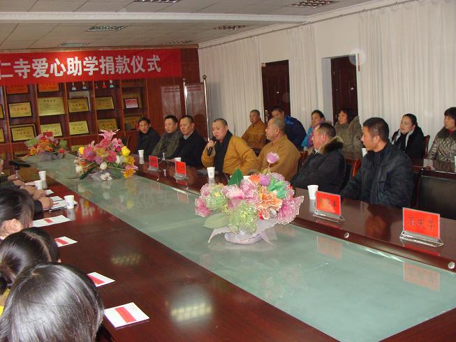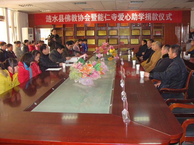2011年元月5日,涟水县佛教协会暨能仁寺爱心助学捐款仪式在涟水县一中隆重举行,涟水县民宗局局长羊兆金,县佛教协会会长、能仁寺方丈曙正法师,佛教协会领导成员和能仁寺僧众居士及一中有关领导、受捐助的学生共约60余人参加仪式。