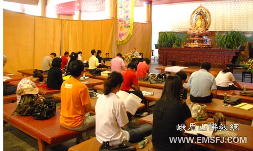 8月30日,北京大学佛学班30余人来到峨眉山大佛禅院朝拜,并礼请四川峨眉山佛学院法源法师在峨眉讲堂为他们讲授《普贤行愿品》。中午,全体学员在大佛禅院五观堂过堂用斋,体验寺院生活。