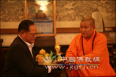 2009年9月4日下午泰国农业部长率团一行三十人前来灵光寺参拜佛牙舍利,受到常藏大和尚热情接待,并赠送礼品。(稿源:灵光寺)