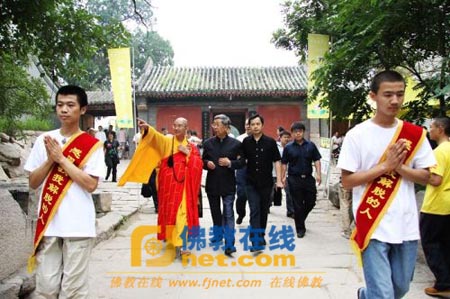 2009年9月3日,全国人大常委会原副委员长、中华社会救助基金会首任理事长许嘉璐一行参访北京龙泉寺,龙泉寺方丈学诚法师亲率龙泉寺两序大众前往山门迎接。参访过程中,许嘉璐理事长与学诚法师进行了亲切座谈。双方就佛教思想、传统文化发展、佛教教育及“身心”关系问题等做了深入探讨。学诚法师还向许嘉璐理事长赠送了一套《八十华严》以作纪念。(图片来源:学诚法师博客)