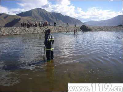 2009年9月12日17时40分,西藏山南地区消防支队119指挥中心接到报警:距乃东县泽当大桥800米处,往桑耶寺方向有一人员溺水,急需救援。接到报警后,指挥中心立即调集支队1辆行政指挥车,乃东县泽当中队1辆抢险救援车,8名消防官兵赶赴事故现场。