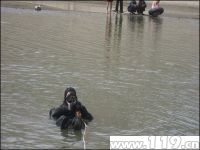 17时55分,救援人员赶到现场,经现场侦查和询问了解得知:乃东县泽当镇甘丹曲果林寺一僧人在河边洗澡,不慎陷入淤泥中,由于时间过长,溺水僧人可能已经遇难。根据反馈情况,指挥员命令由一人佩戴潜水器材下水进行搜救,并将相关情况及时通知乃东县公安局和急救中心。由于淤泥太多、水质混浊,部分水域有暗流,水下视野非常模糊,给救援工作增加了难度,初次下水搜救未果。经过再次确认与判断,指挥员命令救援人员在僧人落水处10米范围内开展细致搜索,经过1小时15分的连续作战,于19时10分将僧人成功救援上岸,但由于该僧人溺水时间过长,经诊断,已不幸遇难。