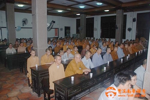 大和尚讲话后,佛学院教务长传源法师发言,希望各位同学能够在法会中恪守礼仪。最后法隆法师对法会安排做了补充说明。