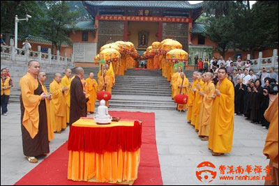 佛历二五五三年,农历己丑年八月初三(公历2009年9月21日,正值第二届广东禅宗六祖文化节在韶关南华禅寺盛大举行,同时也是禅宗六祖惠能大师涅槃之日,俗称“南华诞”;南华禅寺举行大雄宝殿重修落成典礼暨开光祈祷大法会。