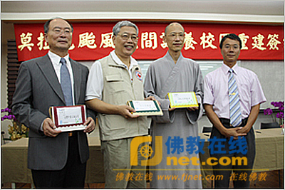2009年9月21日上午10点,法鼓山、红十字会、台湾“中油”等9个民间团体,共同参加了“莫拉克风灾民间认养校园重建签约仪式”,并分别与受助学校及县府代表正式完成认养签约。