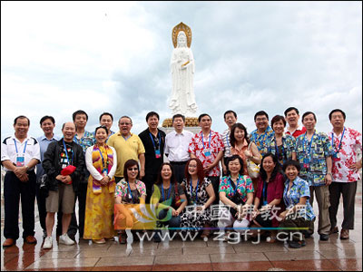 9月24日,来自欧洲、美洲、东南亚等十个国家的20家主要境外华文媒体高层在海南为期五天的考察活动进入第三天。20位境外华文媒体高层在保亭参观黎族风情后,冒雨赶往三亚南山文化旅游区,吃素斋,看“鸟巢”,瞻仰108米南海观音。