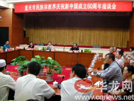 为庆祝新中国成立60周年,激发爱国热情,振奋民族精神,增强接受中国共产党的领导和爱国的自觉性,重庆市民族宗教界于2009年9月25日下午在市委统战部召开了庆祝新中国成立60周年座谈会。