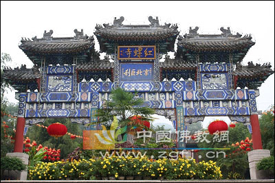 美丽的鲜花装点着古寺内外,喜庆的灯笼串联起美好祝福。红螺寺景区呈现在游客眼前的是一派热烈、喜庆的节日景象。 由串红、大粒菊等各色鲜花组成的立体花坛装点着门区广场,象征着吉祥的大红灯笼悬挂在文化长廊、寺庙区等古建两侧,各条游览线路,鲜花引路,翠竹迎客,节日氛围处处体现。 为给游客营造一个喜庆、祥和的游览环境,红螺寺景区自九月初便开始着手进行国庆节前的环境布置工作,经过精心设计与布署,各条游览线路被装扮一新,景区将以全新的面貌喜迎祖国60年华诞。