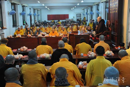 春节来临之际,柏林禅寺一派喜庆,洒扫殿堂,张灯结彩,僧俗二众及各地信众数百人在这里度过新春佳节。