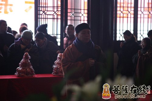 17日上午9点追思法会开始,9点半举行传供法会,法会由心澄大和尚、大初法师、心平大和尚、文定大和尚、心融法师共同主法,来自上海、镇江、淮安等地居士、信众数百人参加本次法会。