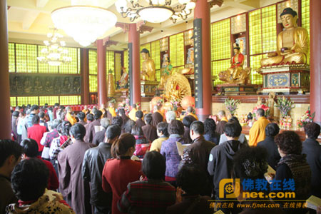 2月24日9时,福建省厦门市药师佛道场石室禅院举行元宵节药师佛消灾吉祥祈福法会,时遇石室禅院慈善功德会2013年2月份会员感恩祈福放生生日会活动一并在寺院大雄宝殿隆重举行。
