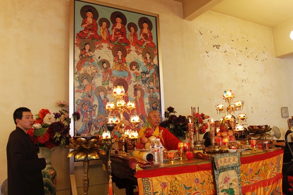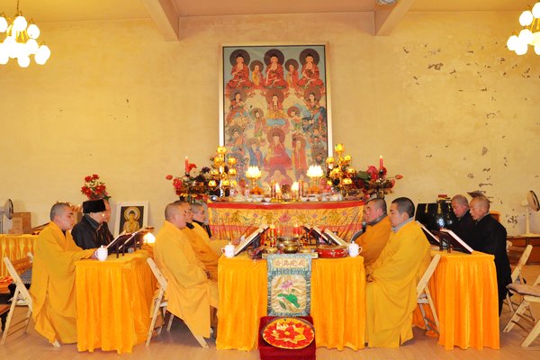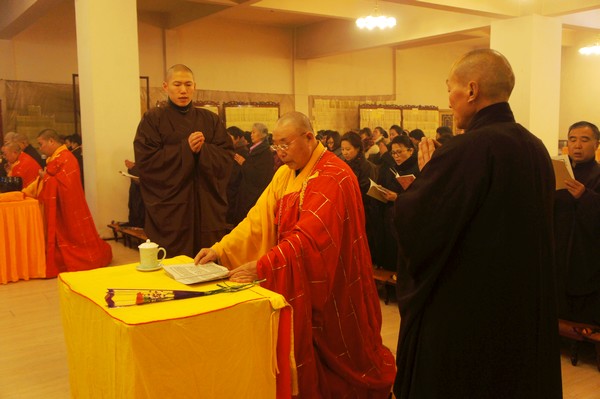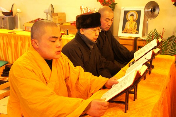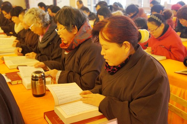 法师领众恭诵《妙法莲华经》