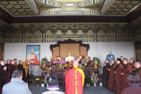 图1:正月二十二日普陀山妙善老和尚纪念堂举行上供法会