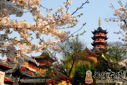 美丽樱花衬托下的千年古刹 南京鸡鸣寺