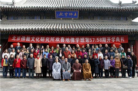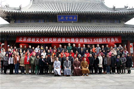 2013年3月9日,北京佛研所第57、58期学员开学典礼在庄严殊胜的广化讲堂举行。北京广化寺监院、北京佛教文化研究所办公室主任定明法师,培训部静贤法师、传空法师、正宇法师等出席了开学典礼,并与全体学员合影。典礼由正宇法师主持。