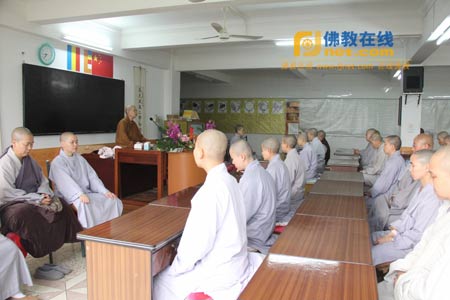 明慧法师开示说,今天农历二月初二龙抬头日,希望大家都为佛门龙象之才。明慧法师表示,修行要积累福德资粮,资粮够了就开智慧,开心就是把心打开来,开心就是积累资粮。大乘佛法就是发菩提心,利益众生,在世间再高学问在佛门中也要重新学。在千佛塔寺,作为小众或净人就一定要磨练。我们这里也学戒律,但戒律是要从实际中行持。常住就是我们的家,大家要多发心,看到什么要出一份心,哪里有花浇一下,看到垃圾收拾一下。