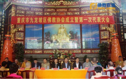 重庆市九龙坡区佛教协会成立大会结束后,随即举行了第一次代表大会。九龙坡区区长助理陈祥出席了会议。重庆市佛教协会、市委统战部、市民宗委、区民宗局、区民政局相关领导也到会祝贺。会议结束后全体代表合影留念。