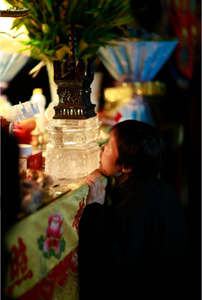 义工们逐一瞻仰舍利