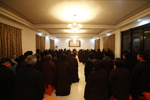 当晚,弘化社义工全体挂单于古阿育王寺,该寺监院门一法师给大家作了慈悲开示。