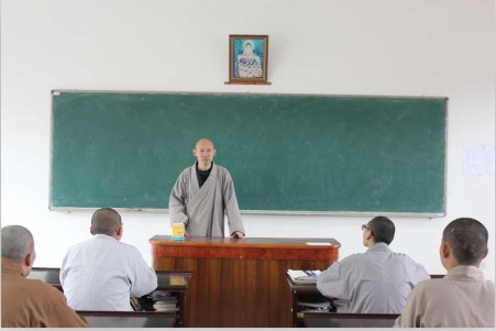 鉴真佛学院明空法师进行教学演示