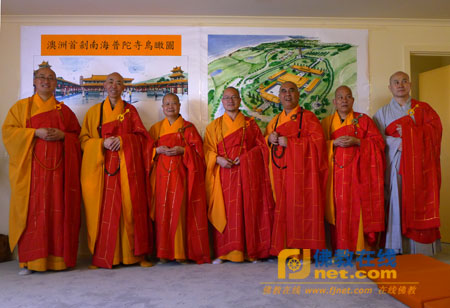 堪培拉护国报恩寺奠基后,在阿德莱德的南海普陀寺还举行了水陆空大法会,并将于3月30日在墨尔本举行妙净法师升座弥勒内院方丈典礼。(文:本性法师)
