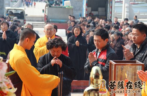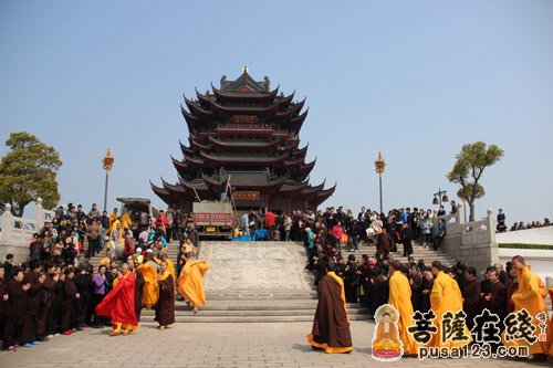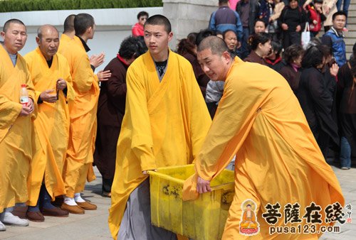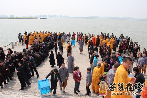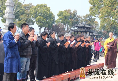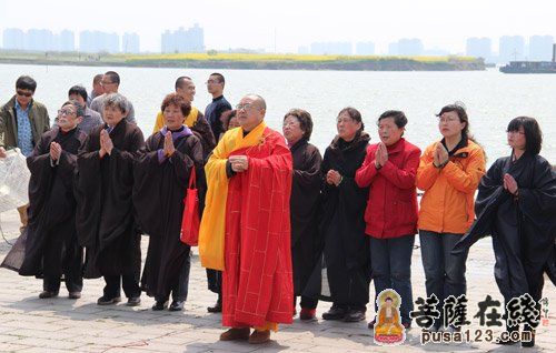 2013年4月4日上午,寒山寺弘法部和重元寺禅修中心在阳澄湖畔举行“清明孝亲追思”放生法会,善男善女400人参加,法会由重元寺当家光瑞法师主持。