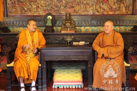 2013年4月7日上午,泰国佛教界文化访问团一行到少林寺参观访问,受到方丈永信法师的热情接待。此次文化团成员由泰国金山寺大长老(僧王)秘书赵坤维蒙拉鹏法师、泰国朱拉隆功佛教大学副校长赵坤麦提汤玛赞法师、泰国朱拉隆功佛教大学主管公共关系及宣传部副校长素维滩帕塔纳斑迪法师等组成。