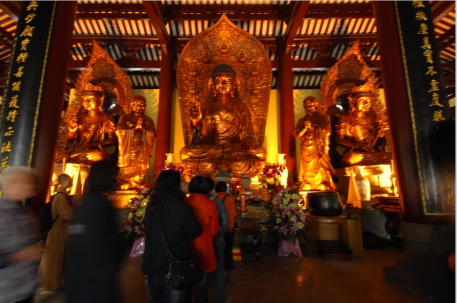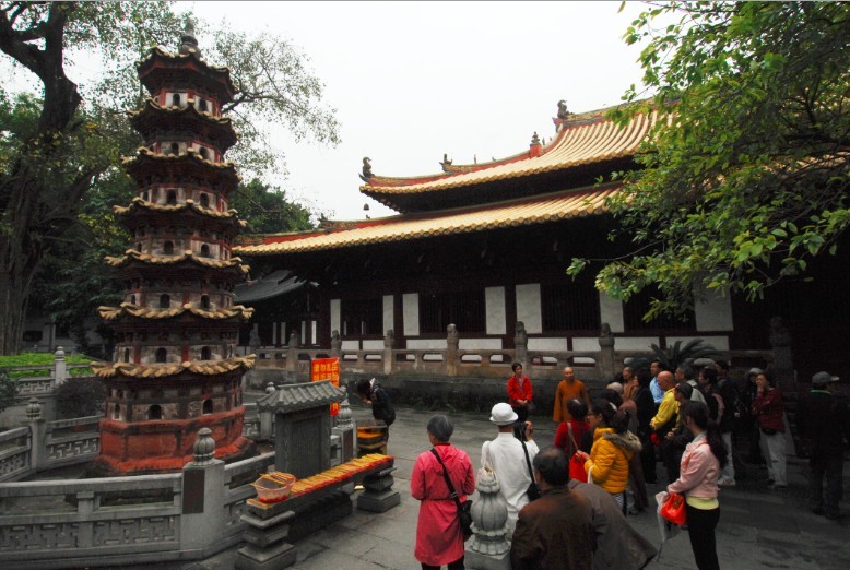 理文法师带领参访团在大雄宝殿拈香拜佛,并详细介绍了大殿的建筑风格及历史渊源。随后参访团一行参观了卧佛殿、西铁塔、观音殿、菩提树等景点,理文法师一一给予介绍。