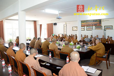 、 2013年4月15日下午3时,闽南佛学院2013年全体法师会议在闽院大会议室召开。全国人大代表、中国佛教协会副会长、闽南佛学院院长圣辉法师,闽南佛学院常务副院长界象法师、副院长兼教务长传明法师、副院长兼教导长净心法师、办公室主任界淞法师等学院领导及男女众部全体法师参加会议。会议由常务副院长界象法师主持。
