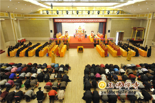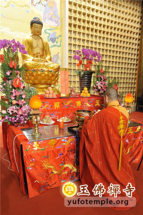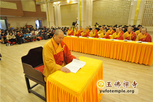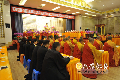 2013年4月17日,农历三月初八早上,上海玉佛禅寺在觉群楼多功能厅举行“佛光护佑禽流感疫情早日平息祈福大法会”。玉佛寺的全体法师、寺院护法居士及今天来寺参加放生活动的信众约300余人参加法会。