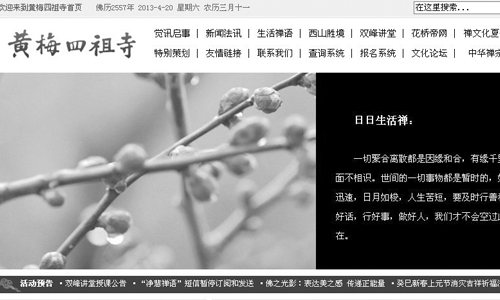 黄梅四祖寺官网2013年4月20日上午9:35分左右由彩色页转为黑白页。