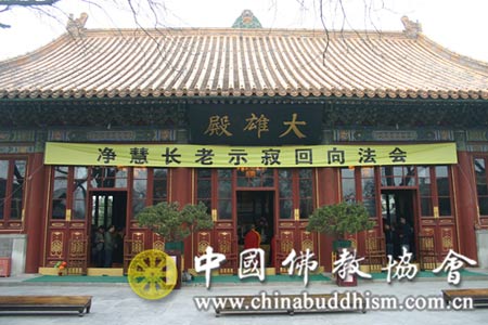 2013年4月22日下午,中国佛教协会在北京广济寺举行净慧长老示寂回向法会。法会由中国佛教协会副会长学诚法师、中国佛教协会副秘书长演觉法师、常藏法师共同主法;中国佛教协会秘书长王健、副秘书长卢浔、办公室主任刘宇、国际部主任普正法师,广济寺、法源寺、灵光寺僧众、《法音》杂志社员工等40余人出席了法会。