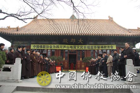 中国佛教协会在北京广济寺隆重举行“中国佛教协会为四川芦山地震灾民祈福超荐暨捐款法会”
