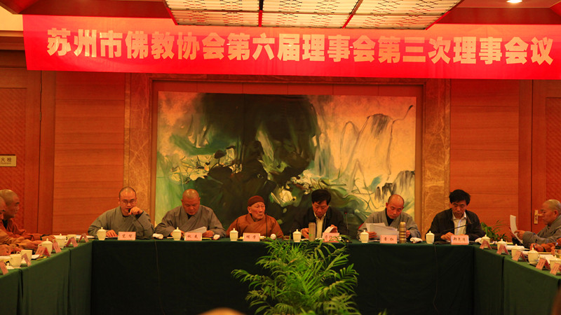 2013年4月22日,苏州市佛教协会在市园外楼饭店举行了第六届理事会第三次理事会议,苏州市宗教局副局长蒋行顺,苏州市佛教协会名誉会长明学长老、会长普仁法师、副会长兼秘书长秋爽法师以及市佛协六届理事会理事出席了会议。
