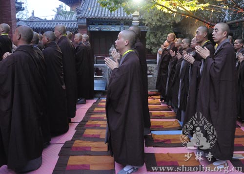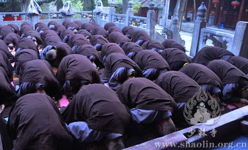 晚上七点,全体新戒在少林寺西方圣人殿前礼佛忏悔。
