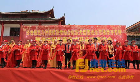 全国人大代表、中国佛教协会副会长、湖南省佛教协会会长圣辉法师,湖北省佛教协会副会长、襄阳市佛教协会会长圣君法师,湖北省佛教协会副秘书长、武汉莲华寺住持圆悟法师,湖北省佛教协会副秘书长、潜江市佛教协会会长、清宁禅寺方丈心恩大和尚,湖北省佛教协会副秘书长、石首市佛教协会会长宗辉法师,浙江省绍兴市佛教协会常务副会长了成法师、副会长印海法师,四川省成都市永寿市住持洛桑多吉活佛,中华佛教青年僧伽会秘书长无上法师,咸宁市佛教协会副会长、咸安大乘寺住持心平法师,湖北省佛教协会常务理事、荆州千佛禅寺住持心觉法师,武汉归元禅寺知客灯磬法师,宜昌市佛教协会副秘书长、古佛寺住持根定法师,电影《金乔觉》地藏菩萨扮演者妙法法师等省内外诸山长老莅临法会。荆州市委统战部副部长、市民族宗教事务局局长孟祥盛,荆州市民宗局纪检书记刘世松,公安县委统战部副部长、县民族宗教事务局局长刘锡文等领导到会祝贺,来自香港、广州、深圳、长沙、南昌、武汉、菏泽及荆州等地的佛教四众弟子、社会各界贤达约1200人参与了这一佛门盛事。