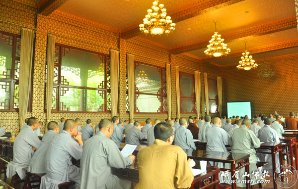 2013年5月4日上午,南京大学博士、清华大学博士后、峨眉山佛学院研究生导师圣凯法师应邀在大佛禅院五观堂作了一场题为《建设中国佛教的使命、宗旨与道路》的讲座。讲座由峨眉山佛学院教务长法源法师主持,峨眉山佛学院全院师僧到场聆听。