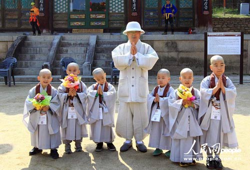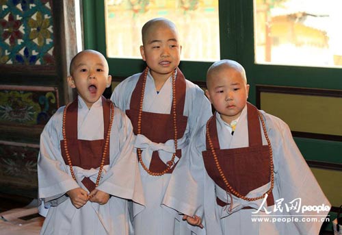 韩国儿童剃度短期出家迎接佛诞节